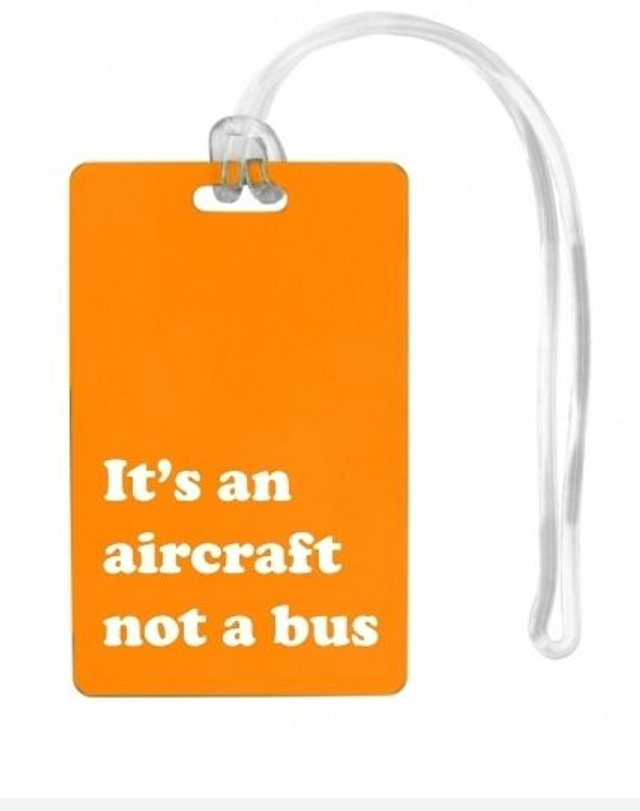 Luggage Tag- It is easy if you get here on time & Its a aircraft not a bus